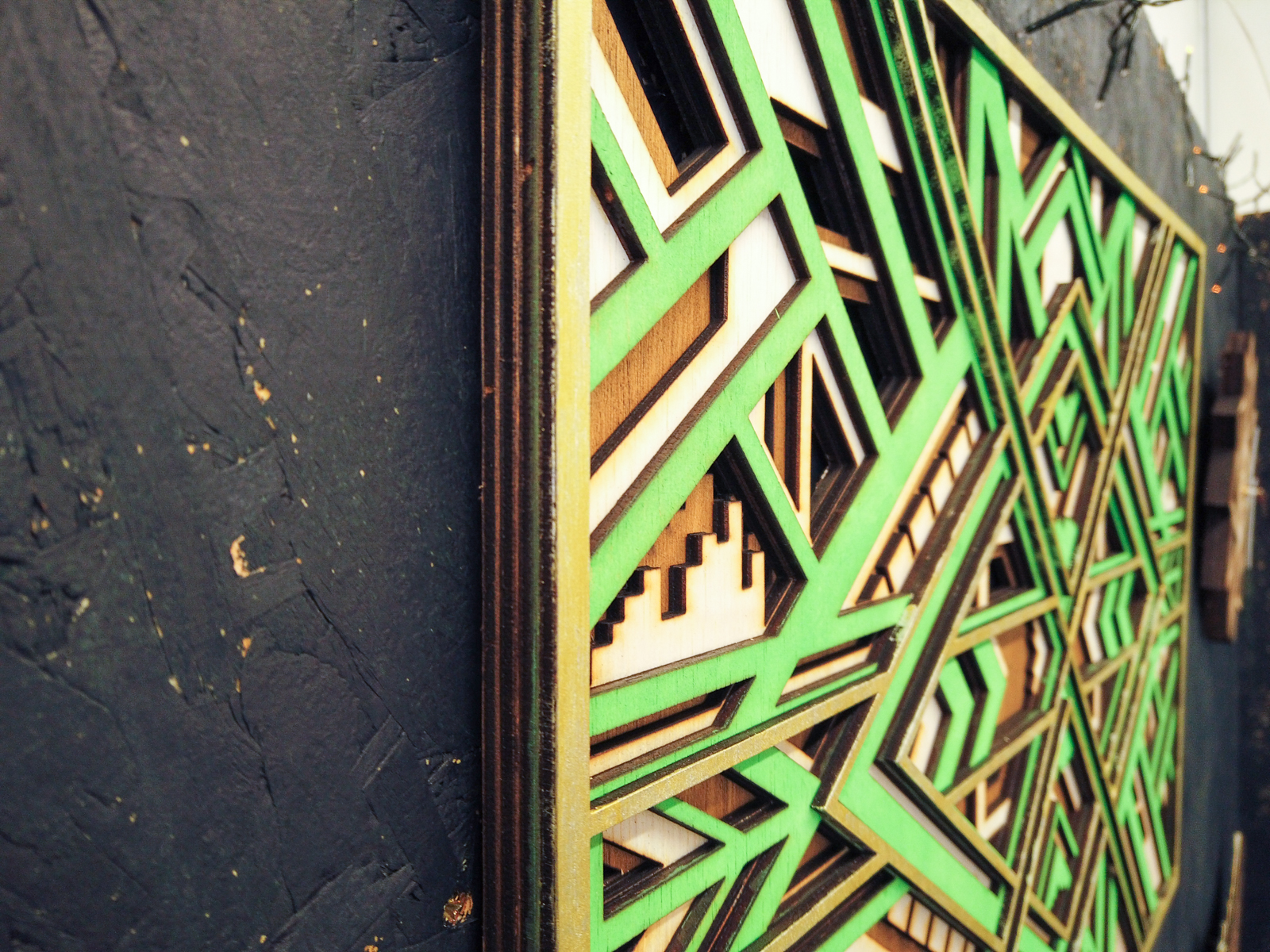 Acest uimitor decor de perete din lemn este realizat din 4 straturi perfect îmbinate de placaj de cedru tăiat cu laser. Această stratificare meticuloasă creează un efect 3D care evidențiază prezența piesei.